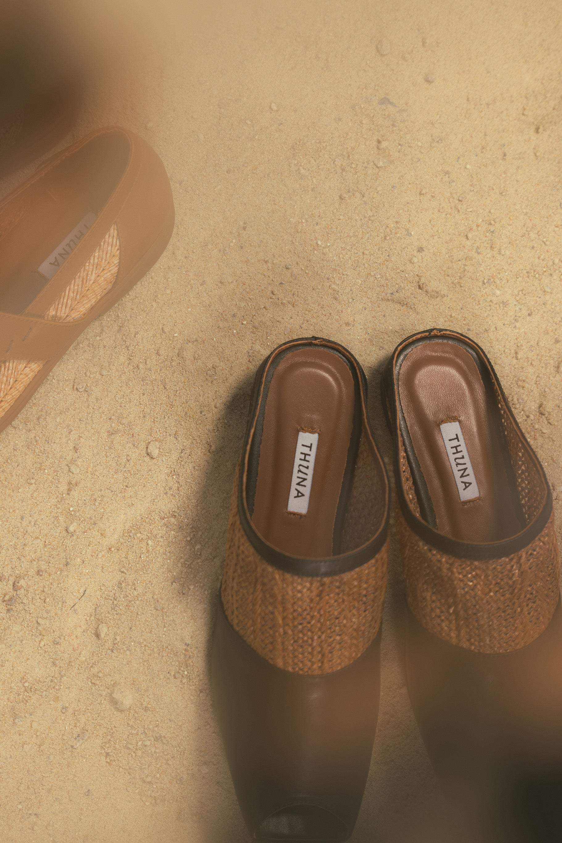 حذاء كلارا ميول هو حذائكِ الصيفي المسطح المثالي، مصنوع من جلد أصلي ومُزين بتفاصيل من الرافيا المنسوجة يدويًا لشعور خفيف الوزن وجيد التهوية. بمقدمته المدببة المميزة وفتحته الأمامية الرقيقة، يجمع كلارا بين الراحة والشكل الأنيق، مُصمم خصيصًا للأيام الدافئة.