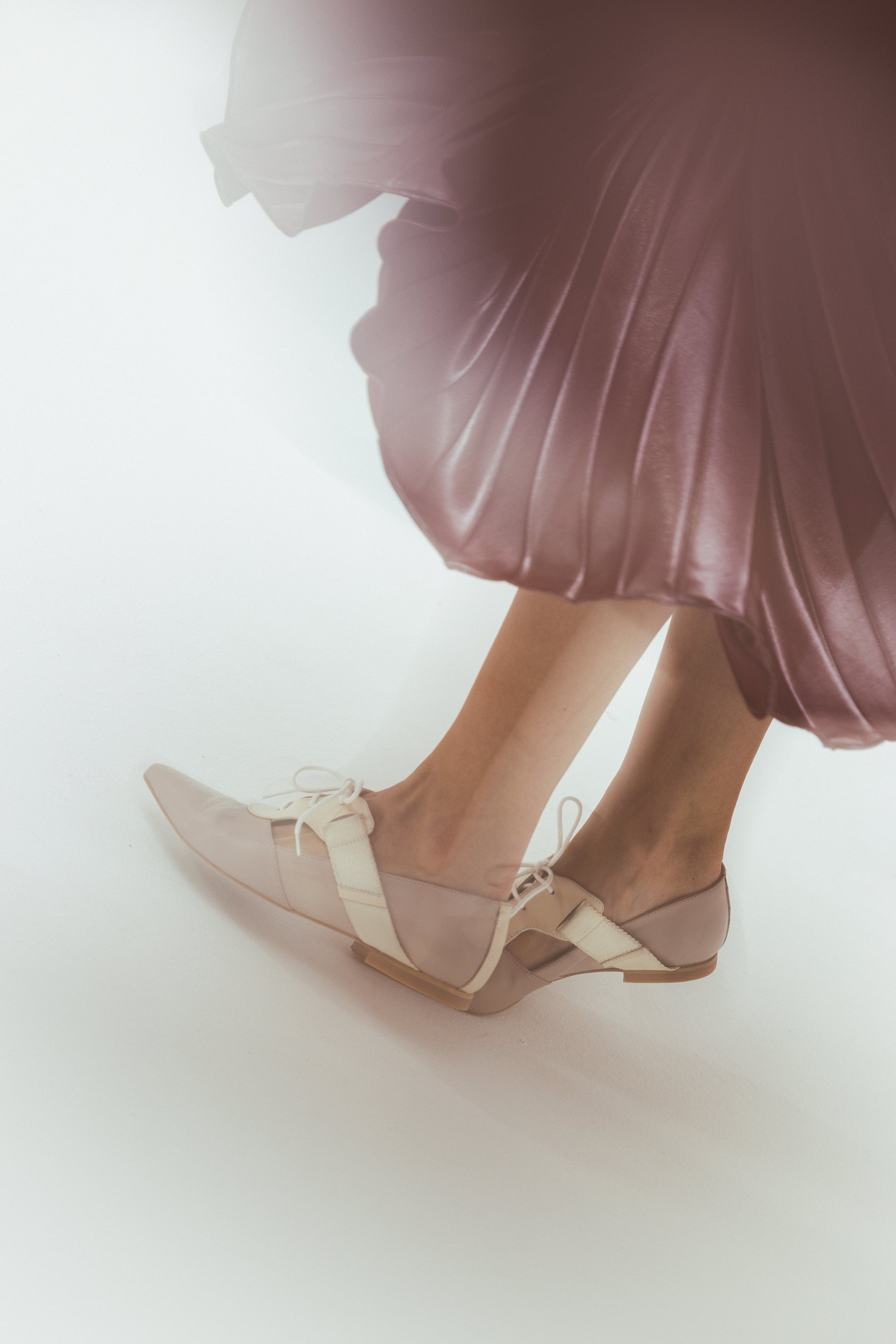 The Lucia Loafer reimagines the traditional Oxford with a pointed silhouette, delicate cutouts, and adjustable laces for a custom fit. Whether crafted in soft leather or relaxed denim, it blends structure and comfort with effortless cool.