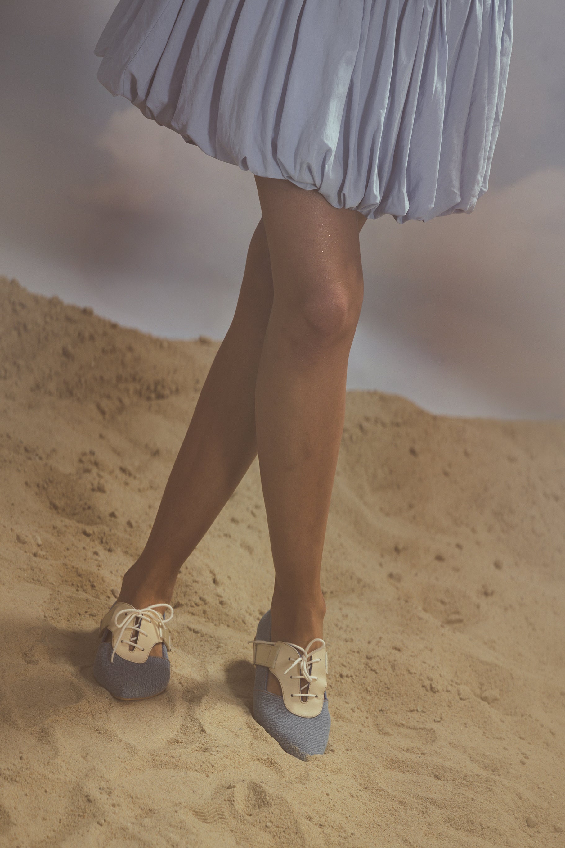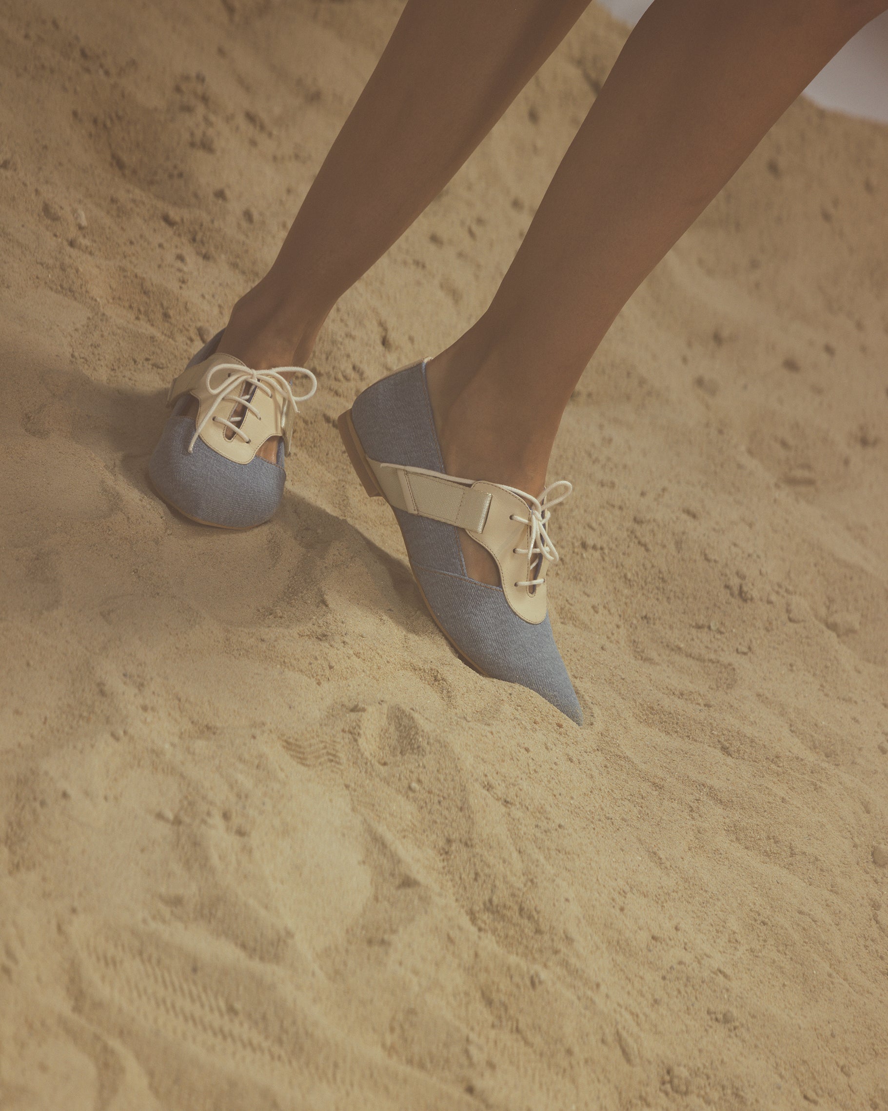 The Lucia Loafer reimagines the traditional Oxford with a pointed silhouette, delicate cutouts, and adjustable laces for a custom fit. Whether crafted in soft leather or relaxed denim, it blends structure and comfort with effortless cool.