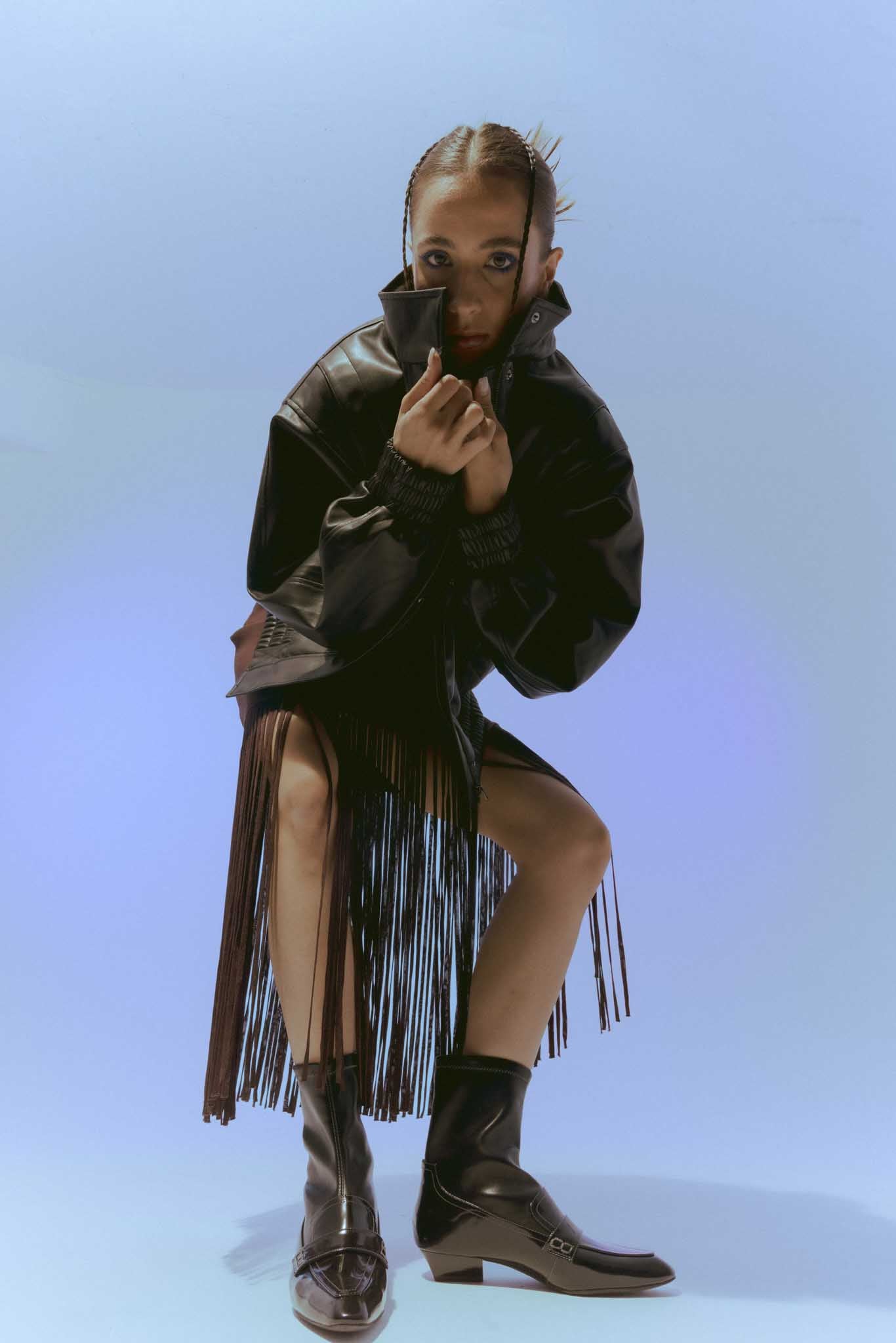 Cushioned insoles and a flexible upper keep comfort front and center. Two moods: Mercury Black (eclipse black—matte knit meets patent shine) and Mercury Cream (lunar ivory with a subtle gloss). Pair with tailored trousers or midi hemlines to echo the collection’s elegant-futurist energy.